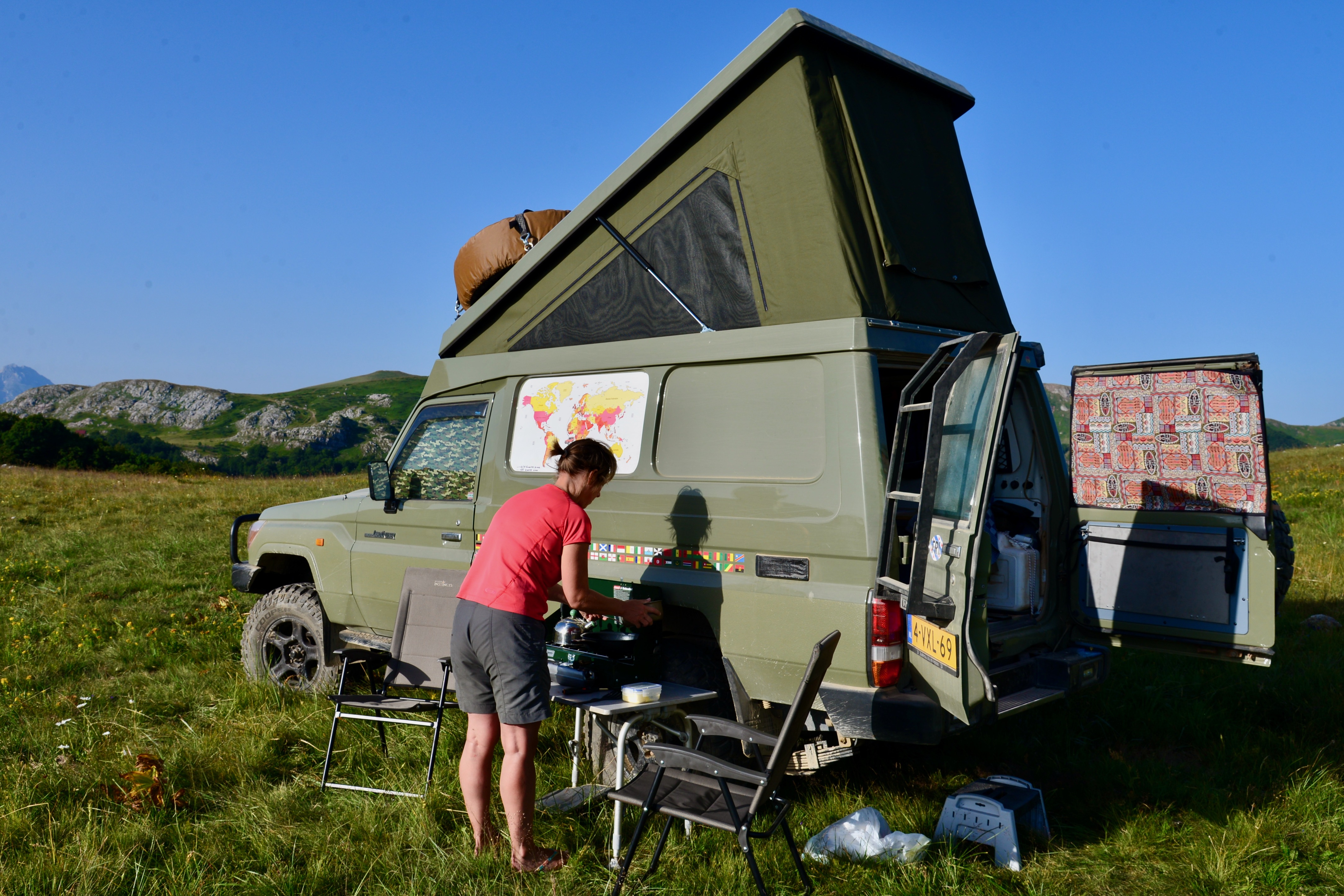 Na een week of drie rond te hebben gereden werd het voor ons weer tijd om terug te gaan naar Albanie. We organiseren/begeleiden eind september begin oktober een reis voor leden van de Landcruiserclub en we dienen nog wat puntjes op de welbekende i te zetten. Misschien dat we later in het seizoen als de vakantie’s voorbij zijn nog eens terugkeren naar dit mooie land om plaatsen als Kotor e.d te bezoeken. Voorlopig hebben we genoten van de bergen, de gastvrijheid en de koelere temperatuur. Die is overigens ook al weer iets gedaald zodat het in de lager gelegen delen ook weer wat aangenamer is.