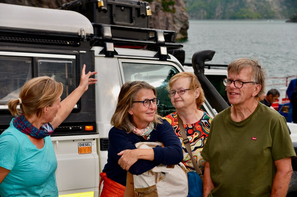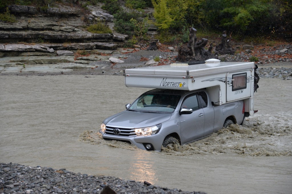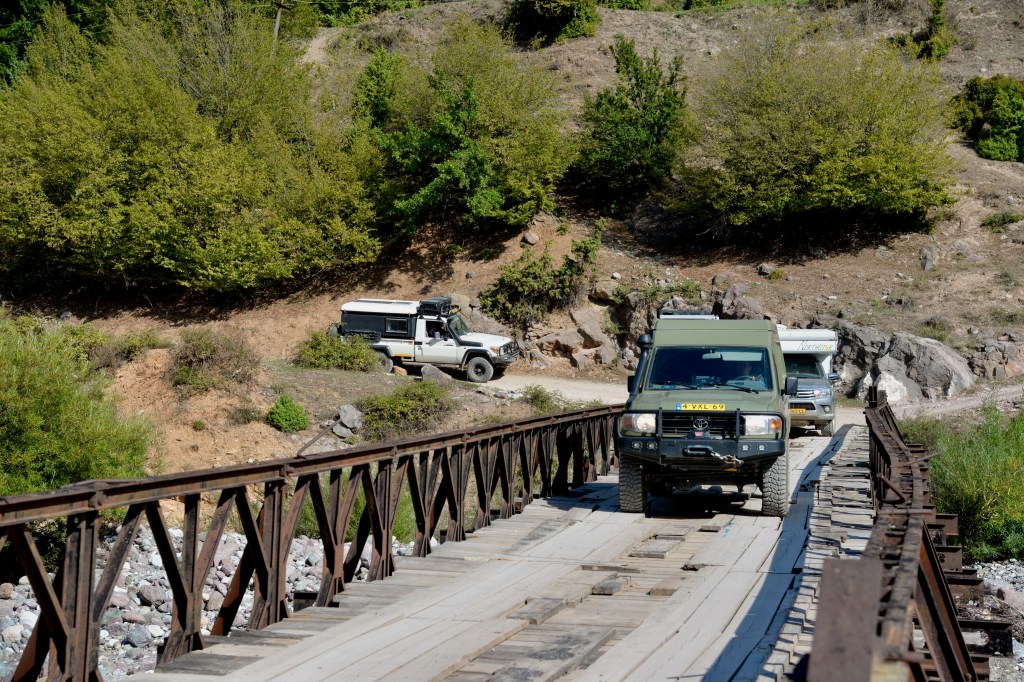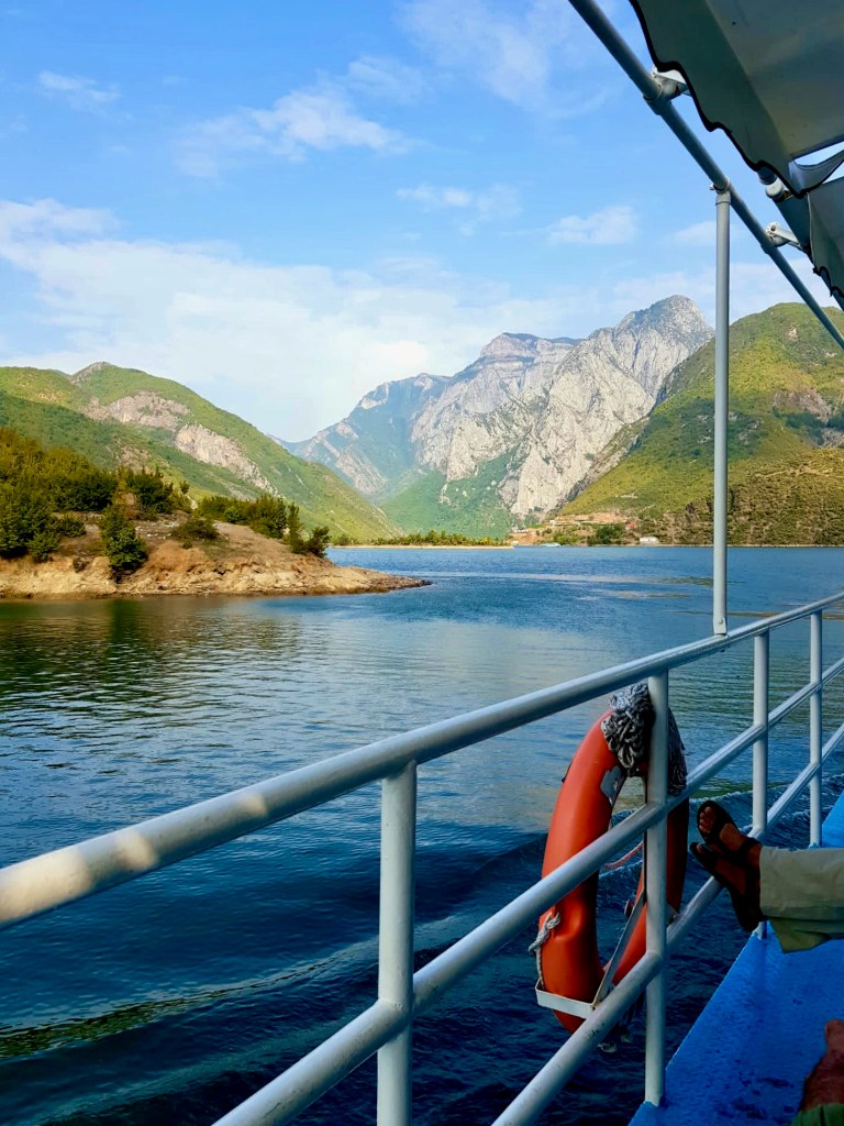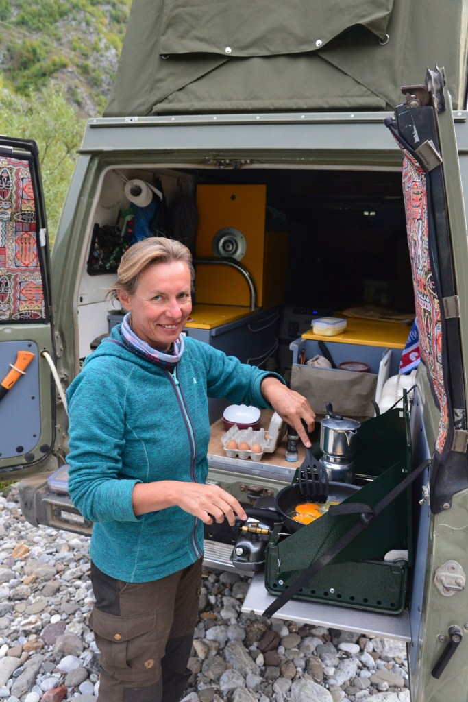 Het weer was fantastisch en op 26-9 reden we richting Theth, het ooit moeilijk bereikbare bergdorp heeft sinds dit jaar een verharde weg gekregen waardoor het niet meer louter voor een 4×4 toegankelijk is. De omgeving was er niet minder mooi door en onze wildkampeerplek geweldig. De volgende dagen werden onverharde routes afgewisseld met asfalt, iets wat geen overbodige luxe was na al dat gehobbel. Wildkampeerplekken met jezelf wassen in de rivier maakten plaats voor campings met warme douche. De tocht met de ferry van Koman naar Fierze ontbrak zeker niet in deze trip en liet het fabelachtige landschap zien vanaf het water. Over water gesproken in week twee van de reis kregen we zoveel water dat de paden veranderden in kleine rivieren, het was fascinerend om te zien hoe een rustig kabbelend beekje veranderde in een kolkende rivier. Het maakte sommige doorwadingen extra spannend.