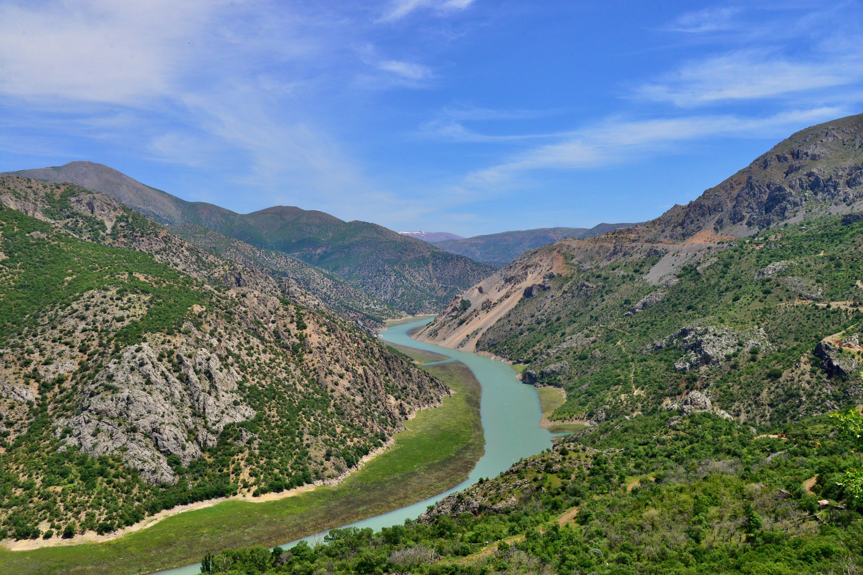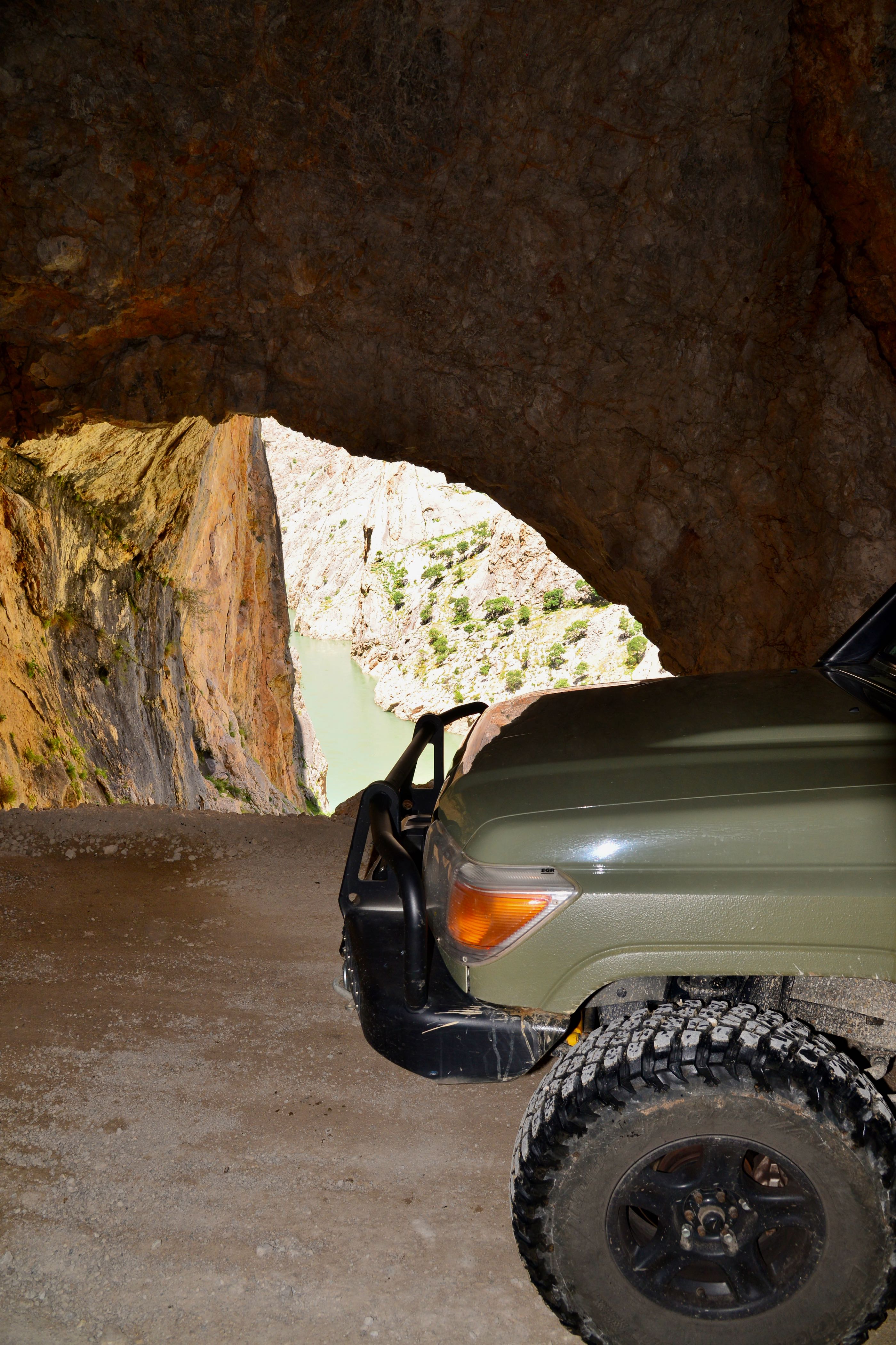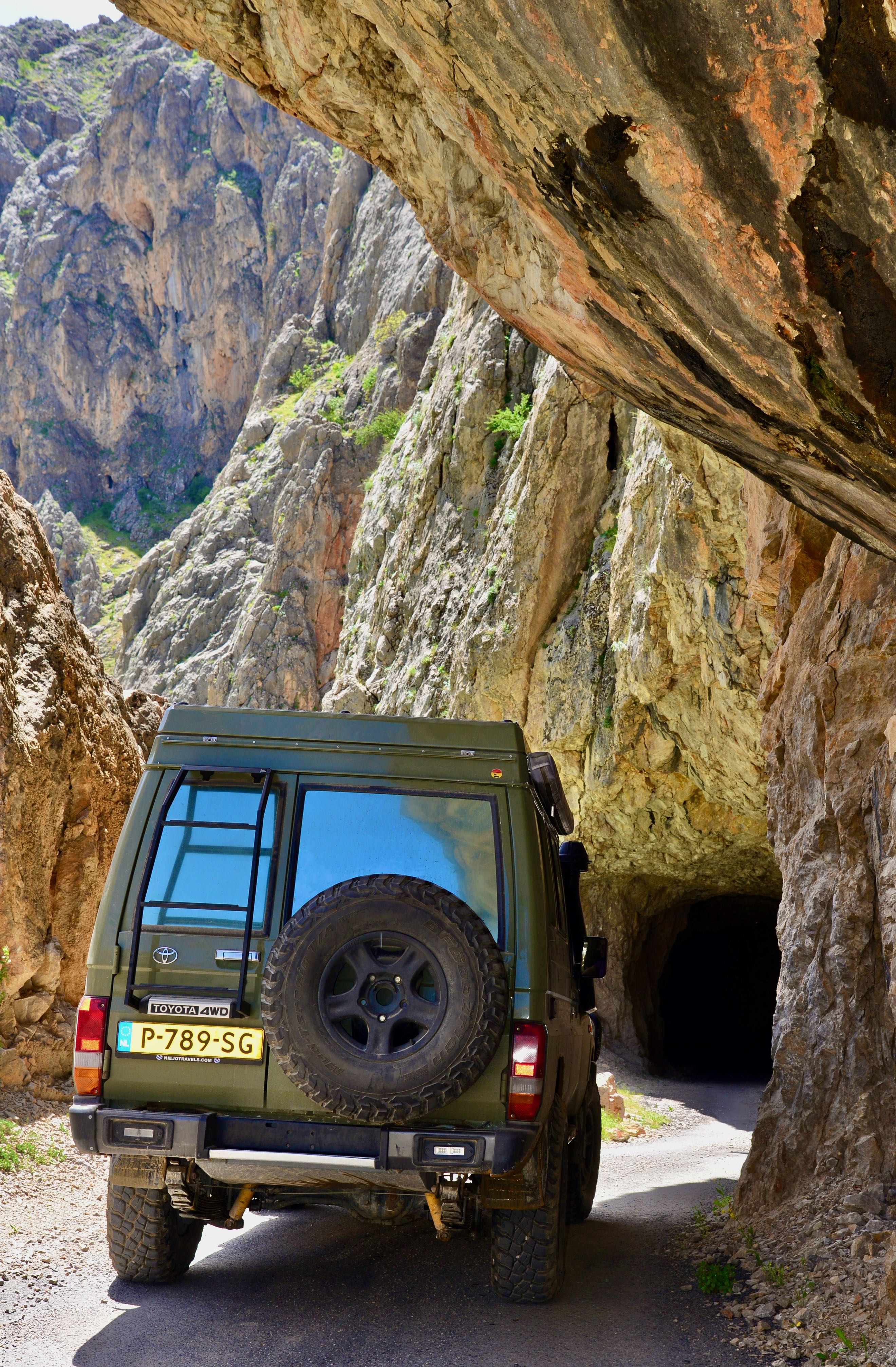 “one of the most extreme roads in the world “. Nou als je dat soort verhalen leest en de nodige filmpjes op YouTube ziet word je als overlander natuurlijk enthousiast. Het verhaal over deze weg gaat terug naar 1870 en duurde maar liefst 132 jaar, dus zo’n 20 jaar geleden was de weg pas helemaal voltooid. De weg stuurt je door 38, voornamelijk door menselijk kracht uitgehakte tunnels en slingert langs de Keranlik Canyon waar de Eufraat rivier doorheen stroomt. De weg is slechts 8.7 km lang waarvan iets meer dan de helft tunnel is. Ons plan was om vanaf het noorden naar het zuiden te rijden langs deze tunnelweg maar op het moment dat we er bijna waren was de weg versperd en stond er op een bordje dat de weg was afgesloten (volgens onze vertaal app). Aangezien het een rood bord was zal het dan wel kloppen is onze ervaring. Hele route in de war… dan maar even omrijden en na zo’n 75 km kwamen we bij de zuidkant van de “Kamaliye Tas Yolu”. Vanaf deze kant leek er niks aan de hand dus besloten we de weg maar gewoon in te rijden, nog even terugdenkend aan de tekst op de website “only for drivers with strong nerves”. Aangezien we wel wat gewend waren en we een gemiddelde rit door een grote stad vele malen gevaarlijker vinden viel het allemaal best mee. Het was inderdaad wel een heel bijzondere weg. Ze noemen het ook wel de dark road omdat de tunnels niet verlicht zijn, maar met onze ledlampjes in de bumper was het zicht prima en slingerden we door de vele tunnels. Opeens was de route van deze kant ook afgezet, we lopen nog een stukje verder of we iets kunnen zien maar we konden niks ontdekken, we besluiten om te draaien en de tunnels vanaf de andere kant te bekijken. Later lezen we dat er iets verderop een deel was ingestort (dat was vast het ”most dangerous” deel denk ik dan). We bezoeken na deze rit het aangrenzende dorpje Kemaliye wat zelfs op de Unesco lijst staat vanwege de mooie bouwstijl uit de Ottomaanse periode.