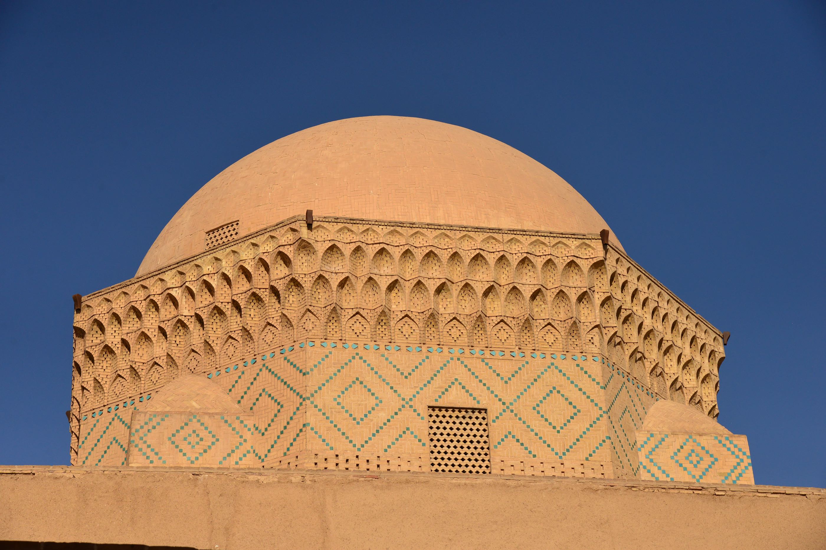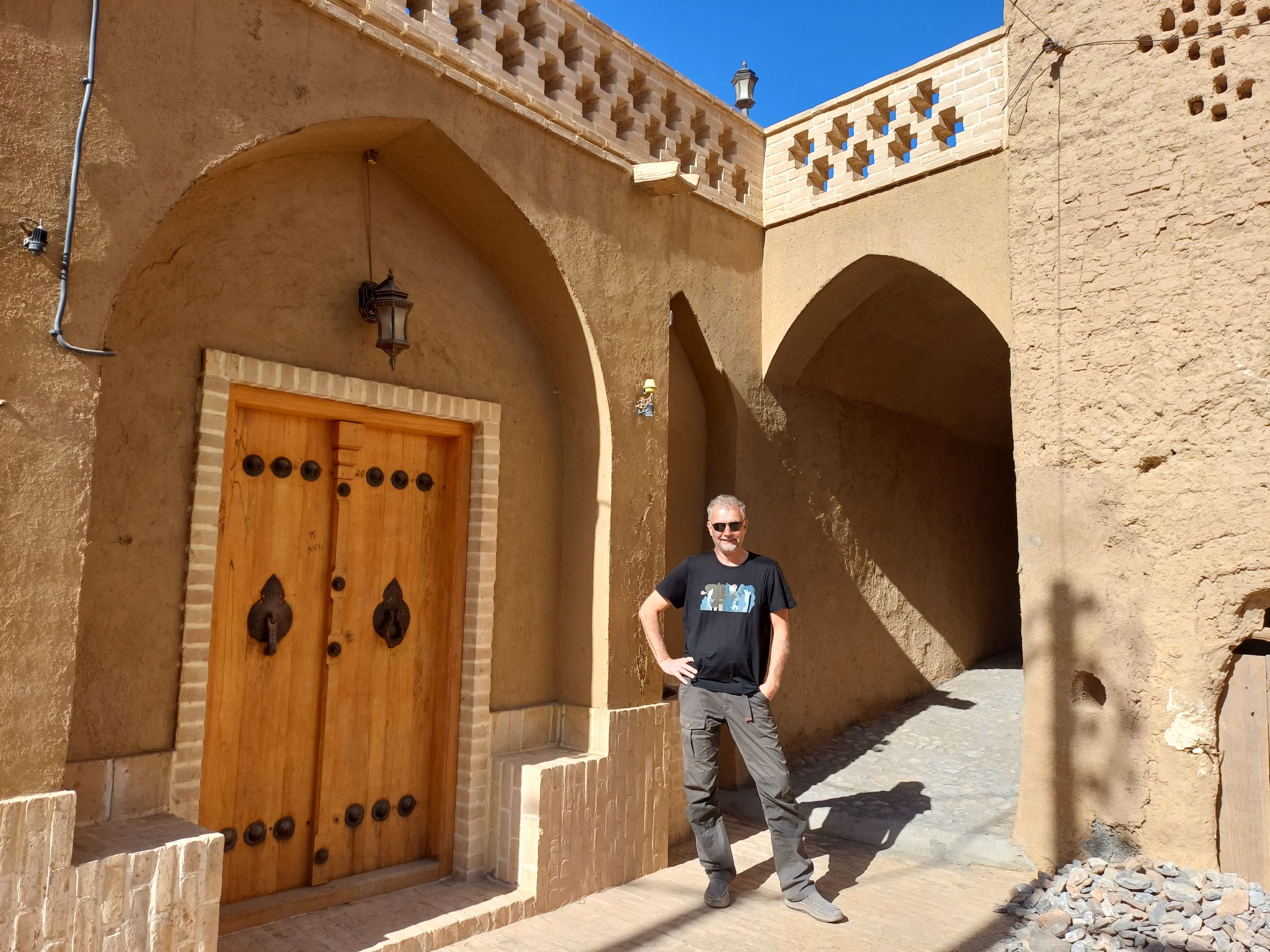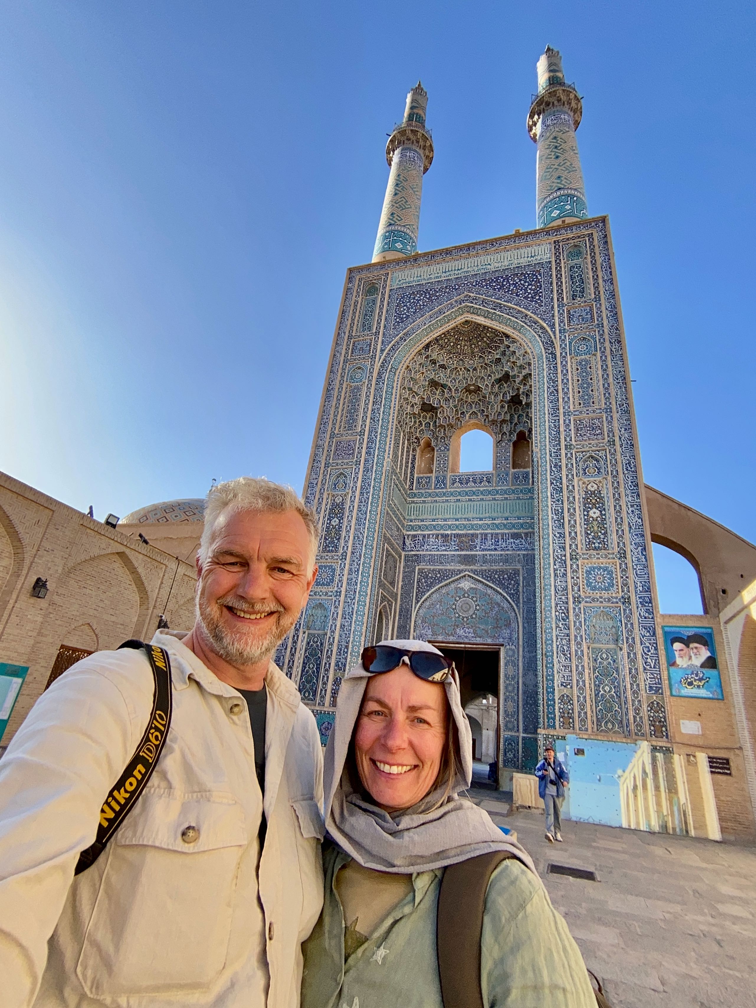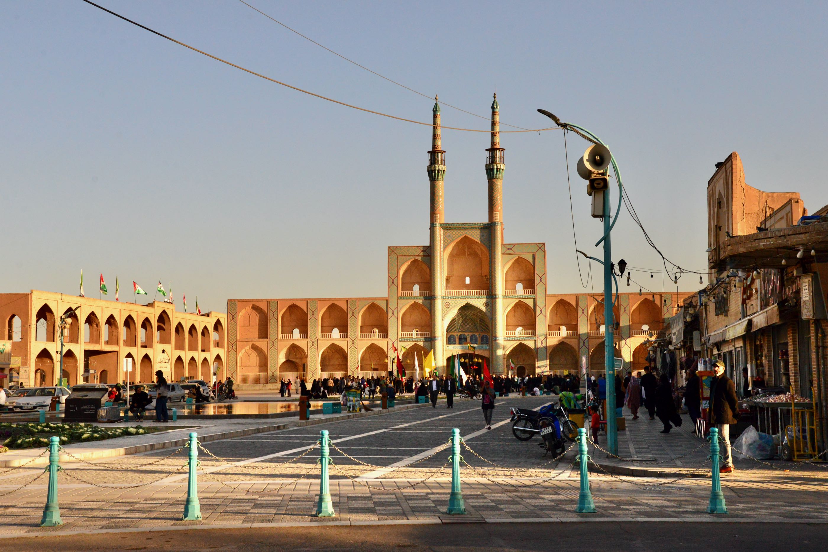 Wat wel bijzonder is, is het verhaal van het geloof. Al heel veel eeuwen voor het christendom en de islam was er het zoroastrianisme, één van de eerste geloven dat maar één god kende die “Ahuramazda” werd genoemd. In ieder geval ergens in de maan juni komen vele aanbidders van dit nog steeds bestaande geloof naar deze plek. Ze komen voornamelijk uit Pakistan en India. Op naar Yazd. We parkeren vlakbij de het oude deel van de stad die al duizenden jaren bestaat en precies in het midden van Iran ligt. We slenteren wat door de straatjes en aanschouwen de gebouwen veelal van steen en daarna gepleisterd wat meer weg heeft van modder met stro erin, wel keihard. We waren niet echt ontroerd van wat een echte trekpleister moest zijn.
