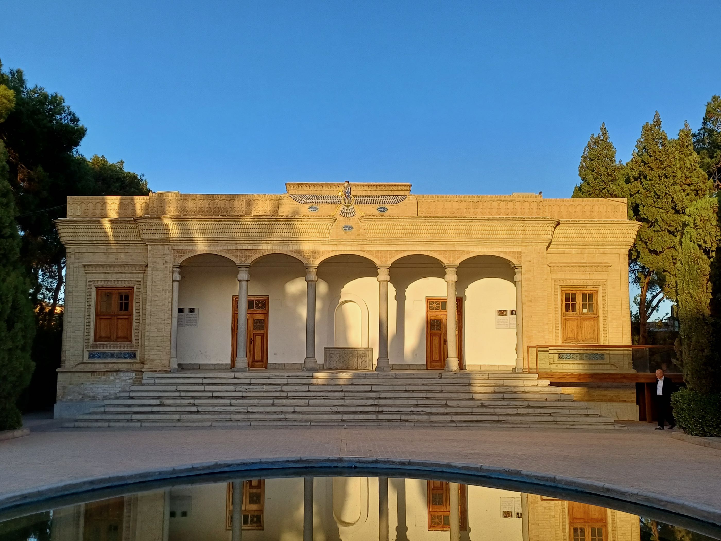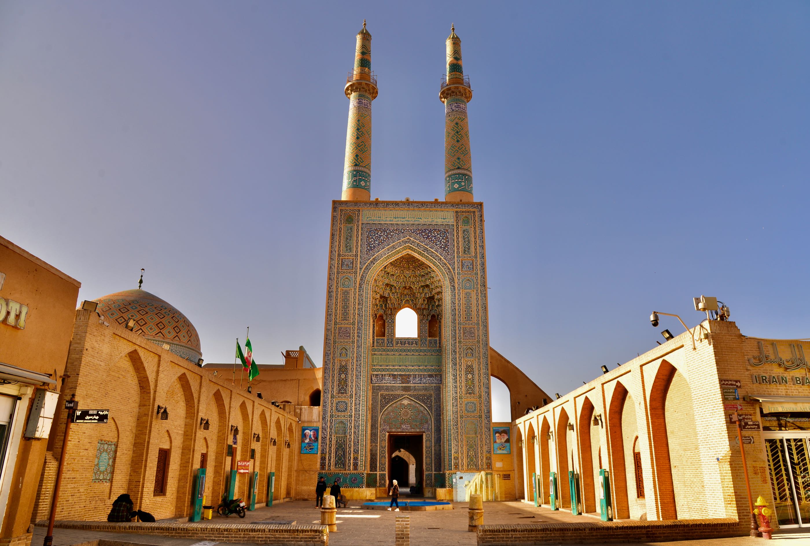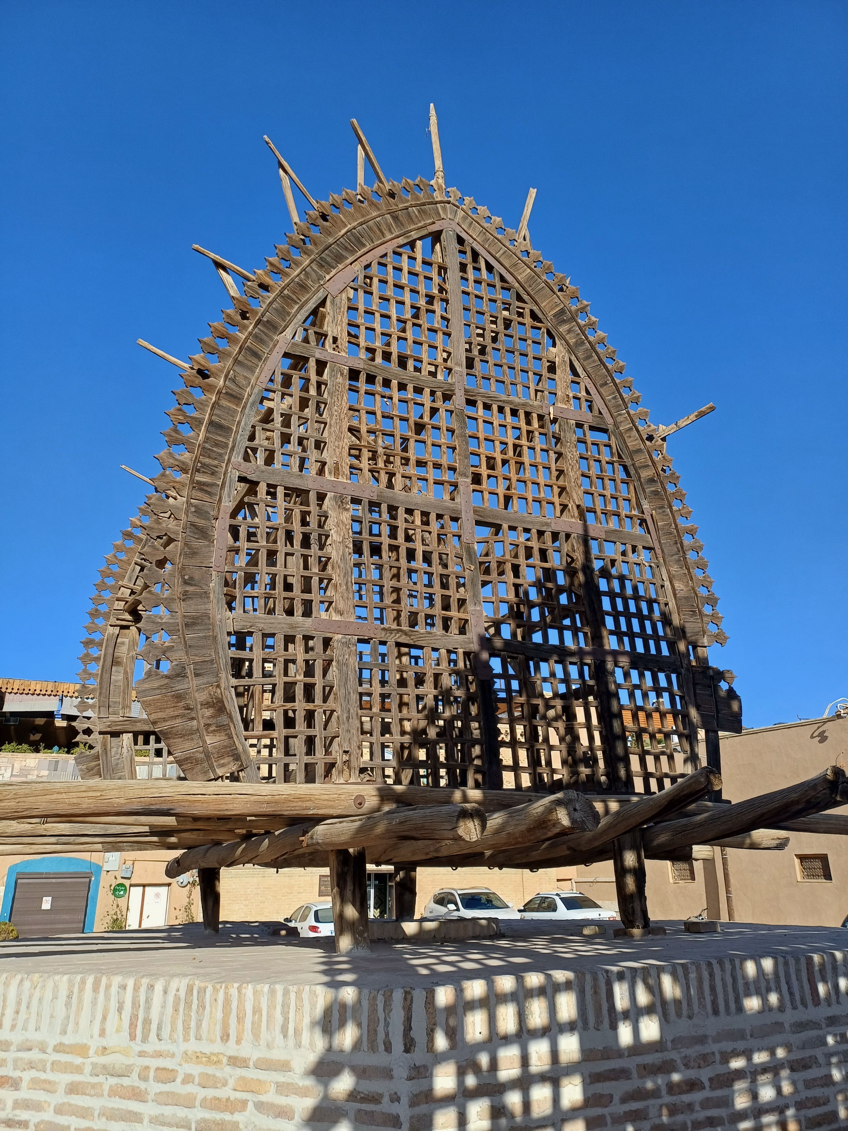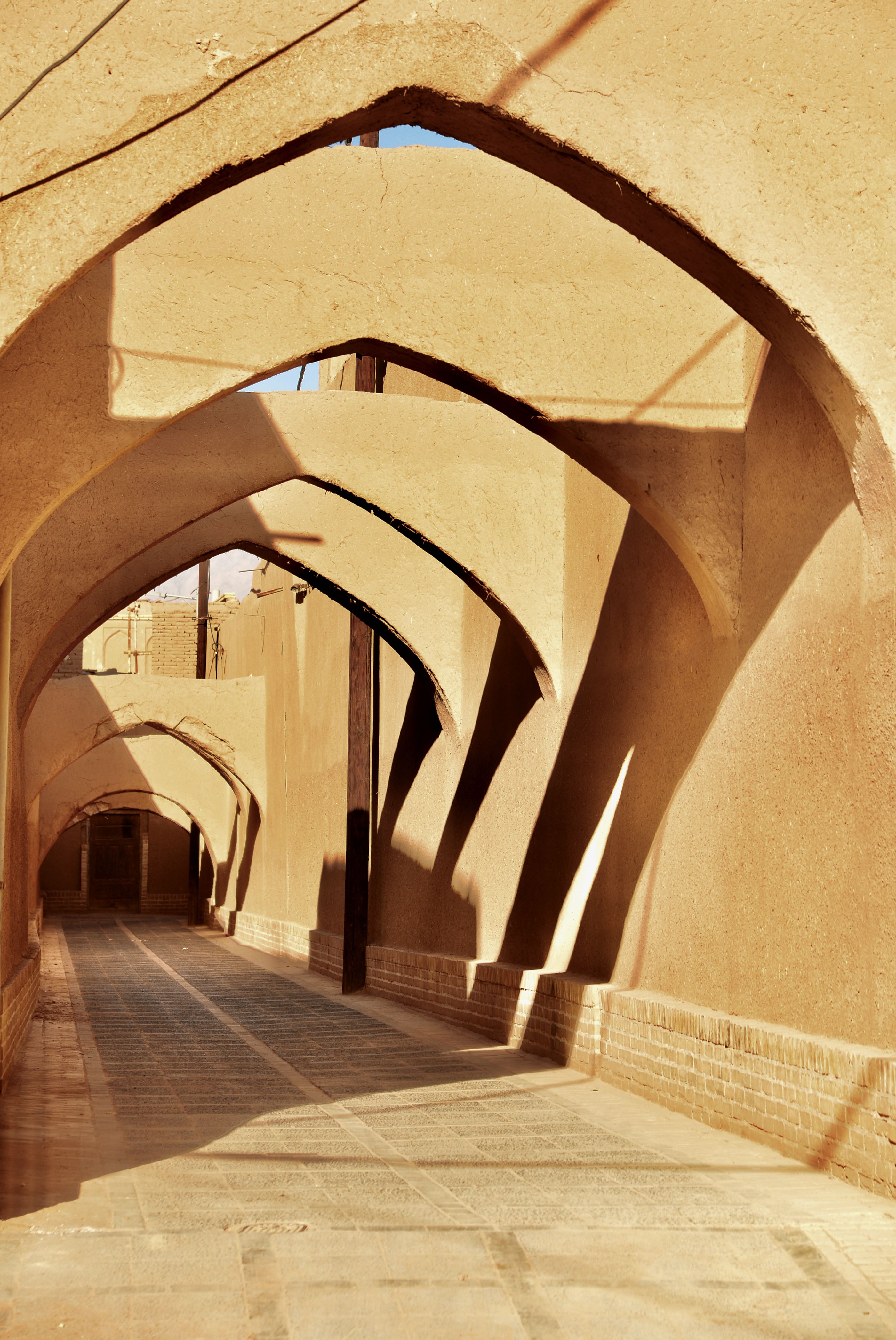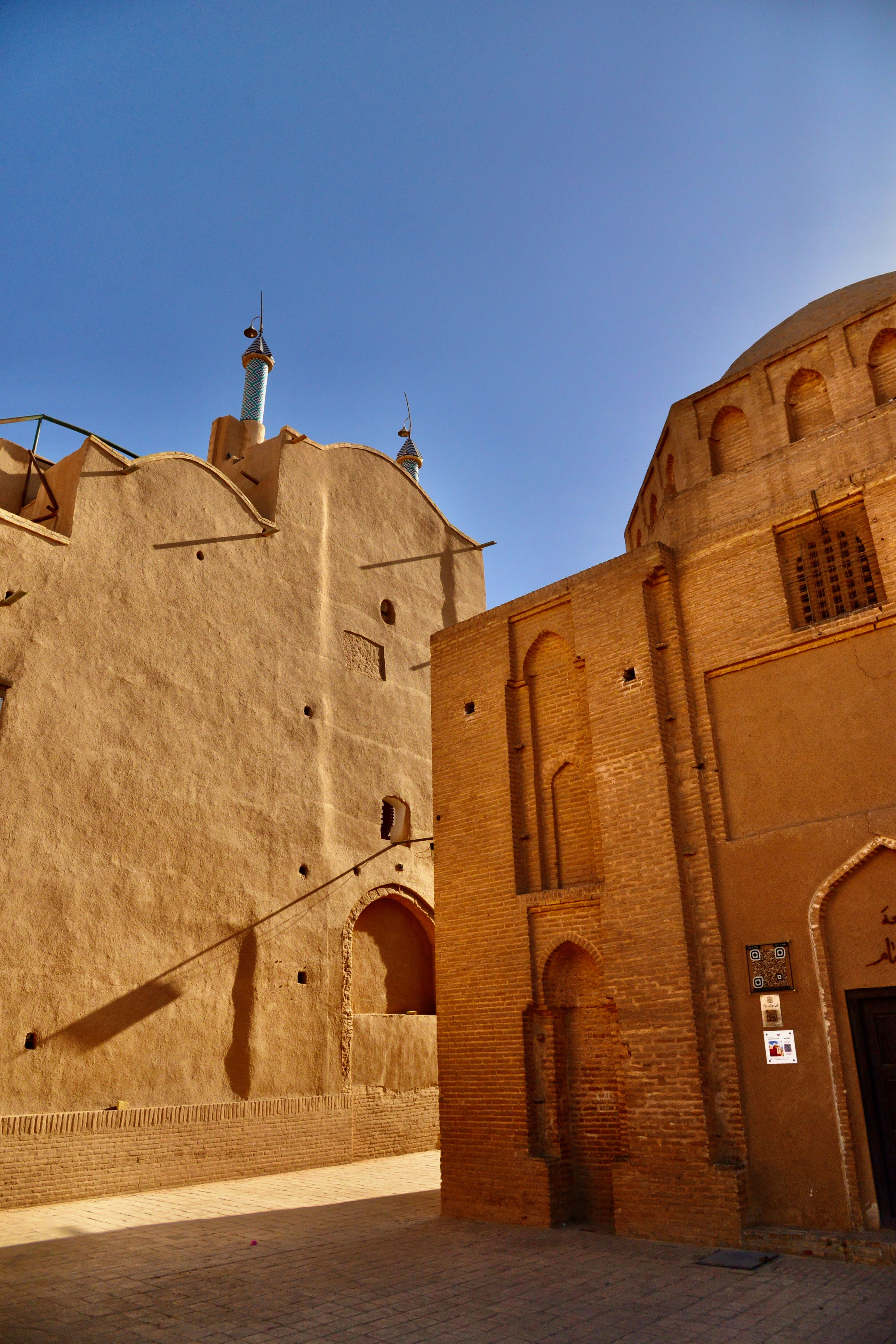 Wat wel bijzonder is, is het verhaal van het geloof. Al heel veel eeuwen voor het christendom en de islam was er het zoroastrianisme, één van de eerste geloven dat maar één god kende die “Ahuramazda” werd genoemd. In ieder geval ergens in de maan juni komen vele aanbidders van dit nog steeds bestaande geloof naar deze plek. Ze komen voornamelijk uit Pakistan en India. Op naar Yazd. We parkeren vlakbij de het oude deel van de stad die al duizenden jaren bestaat en precies in het midden van Iran ligt. We slenteren wat door de straatjes en aanschouwen de gebouwen veelal van steen en daarna gepleisterd wat meer weg heeft van modder met stro erin, wel keihard. We waren niet echt ontroerd van wat een echte trekpleister moest zijn.