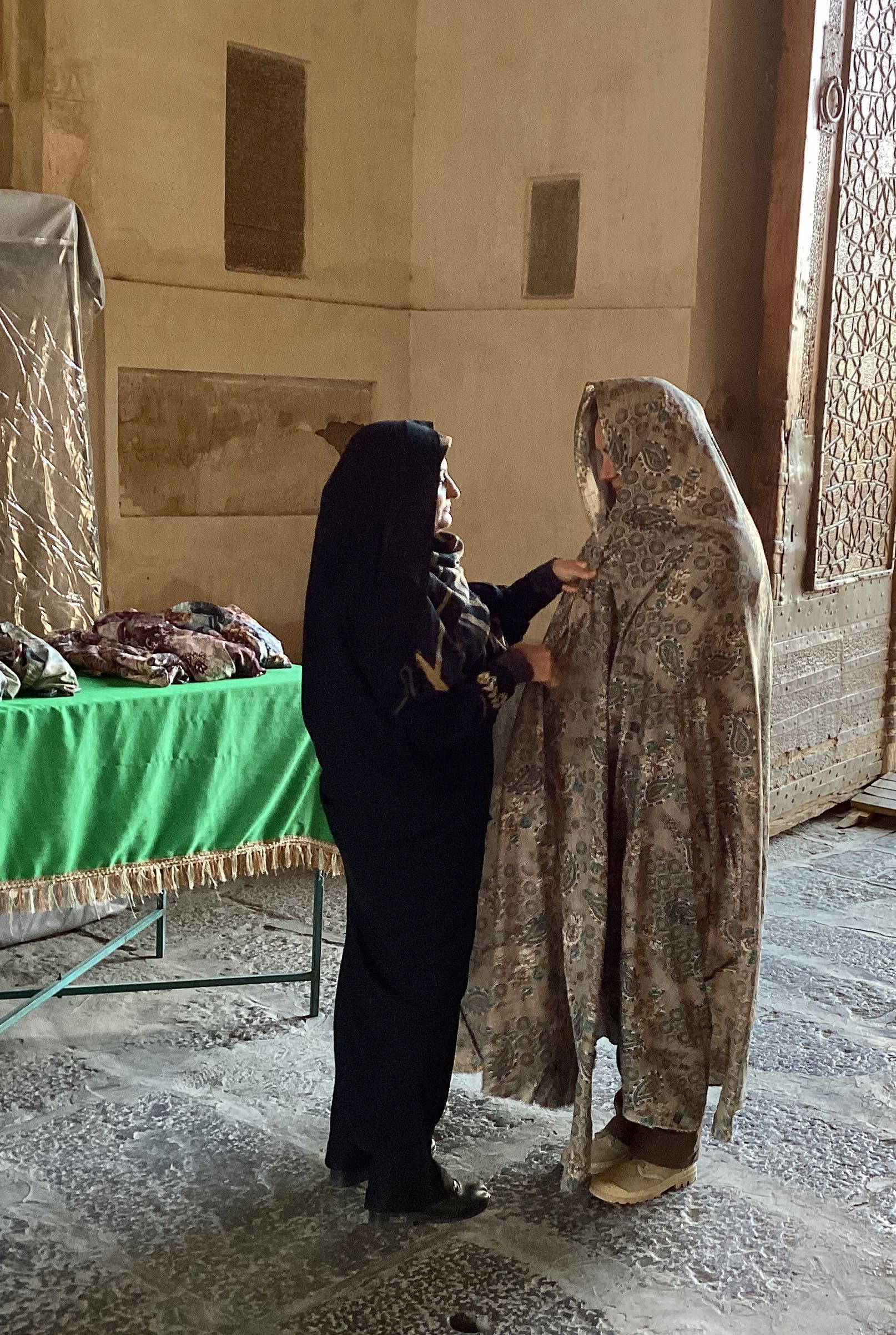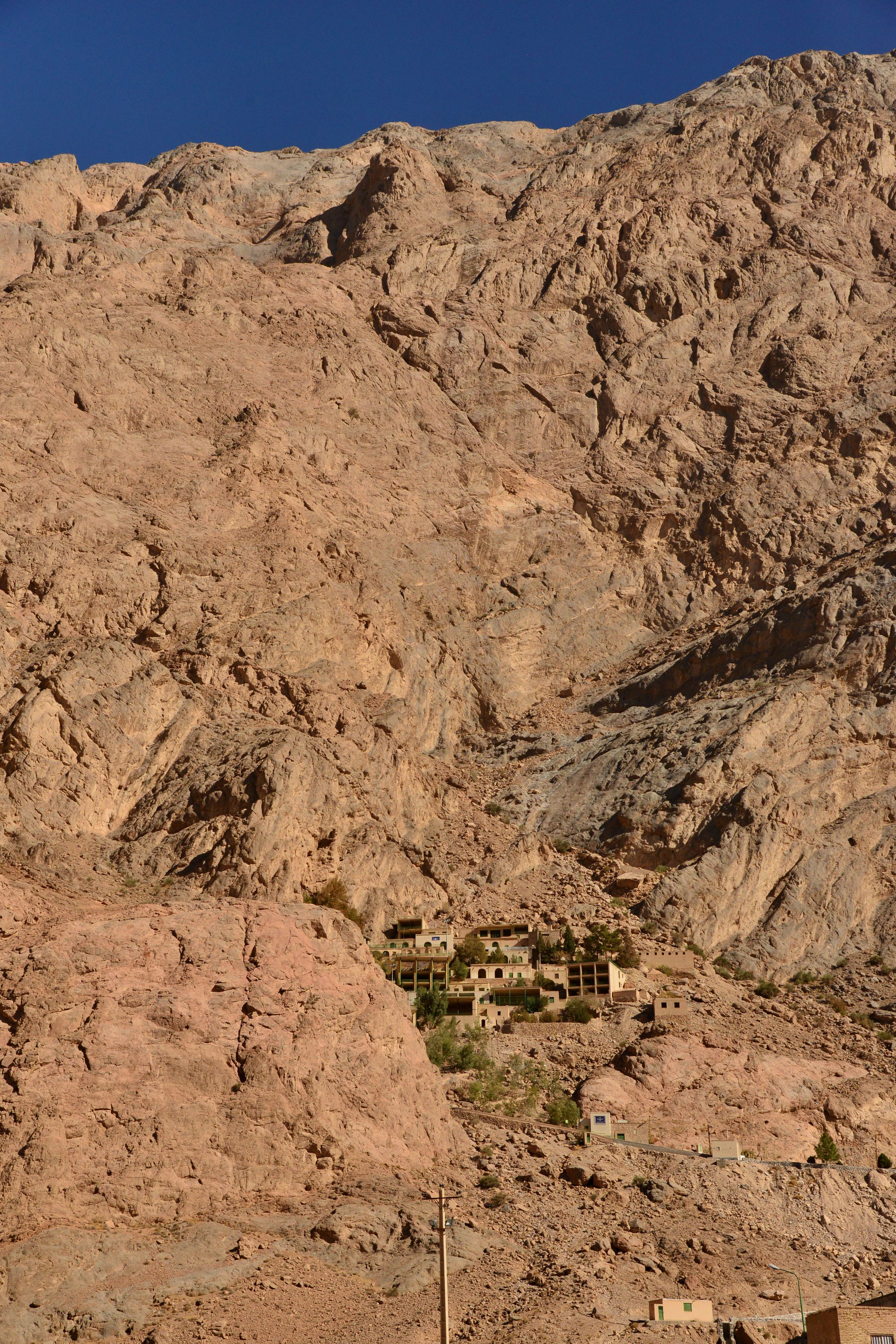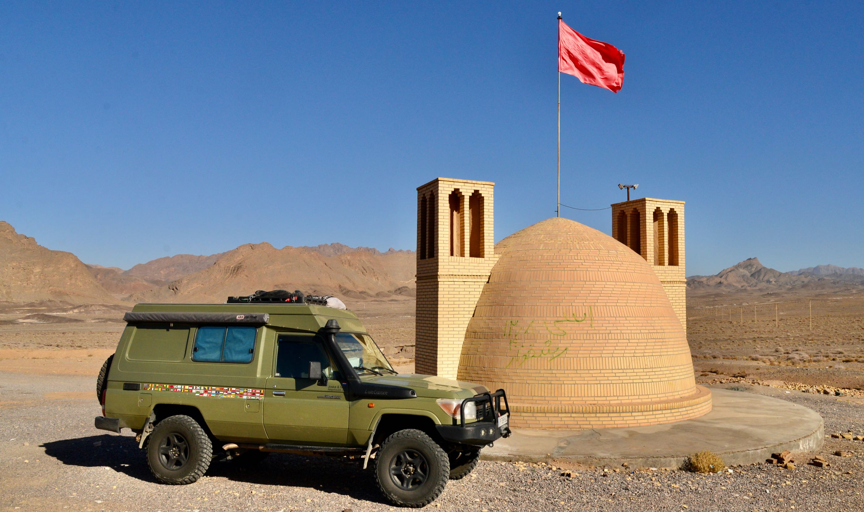 Zonde van die 100 liter diesel die we er met dit rondje doorheen hebben gejaagd gelukkig vallen de kosten van € 1,- dan weer mee. Aan het eind van de ronde was het ook weer gelukt de tank weer helemaal af te vullen. We naderen de stad Yazd volgens de top 10 lijstjes een “must see” in Iran maar eerst nog even langs “Chak Chak” dit is een bedevaartsoort tegen een bergwand aan. Het verhaal gaat dat een Princes verjaagd werd door het toen opkomende islamitsche arabieren en iets met bergen die opengingen en zich weer sloten en zo de arabieren verbijsterd achterlieten. Enfin ze kwam bijna om van de dorst maar toen was er deze plek want chak chak betekent druppelen, er sijpelde dus water uit de berg en ze leefde nog lang en gelukkig. Na €3,- p.p te hebben betaald mochten we een aantal eindeloze trappen oplopen om uiteindelijk bij een soort grot aan te komen waar wat lichtjes branden niet echt bijster interessant.