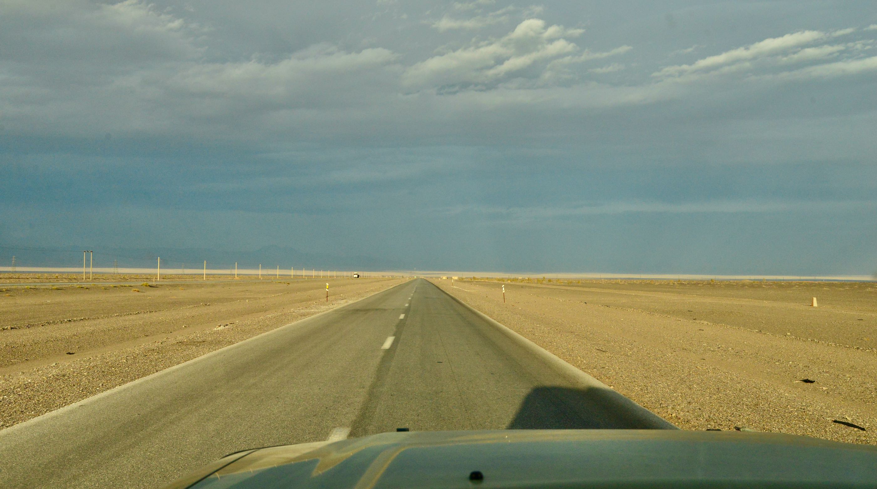 Afijn we verlaten dus Isfahan en maken een loop oostwaarts door de woestijn. Nou daar was weinig aan, saai landschap en zandstorm.