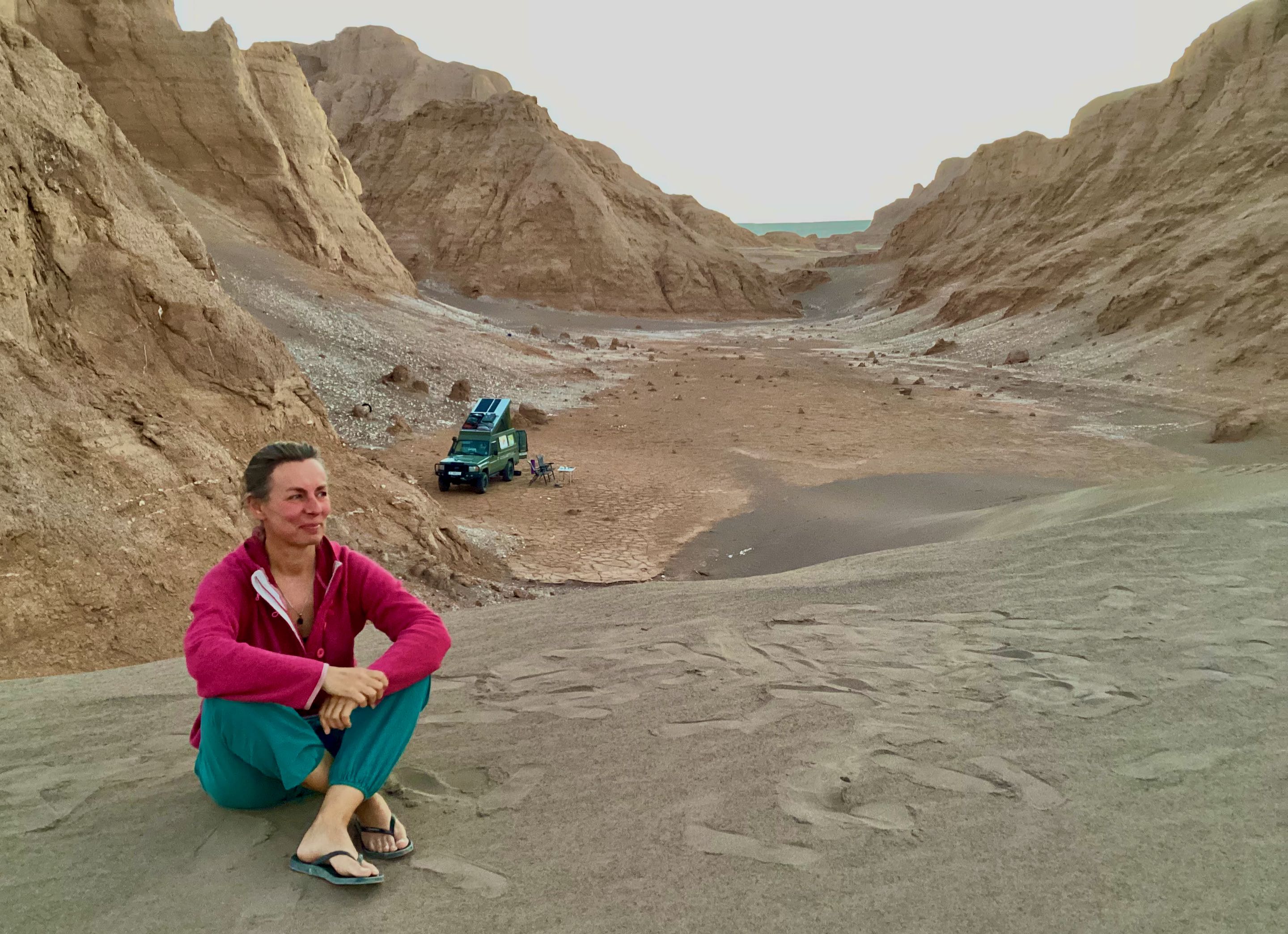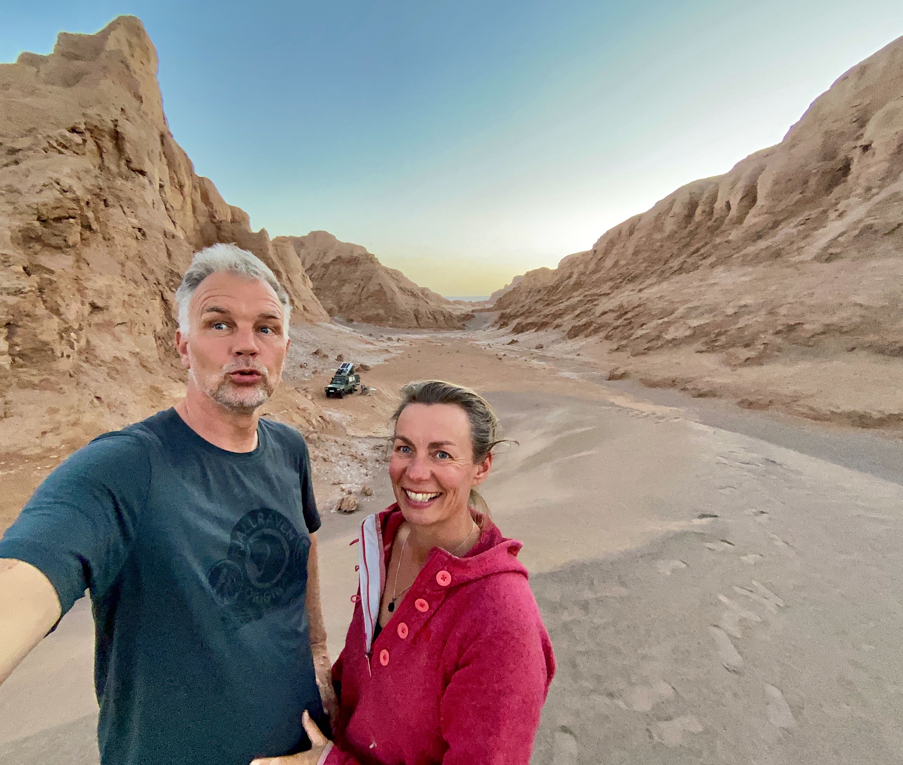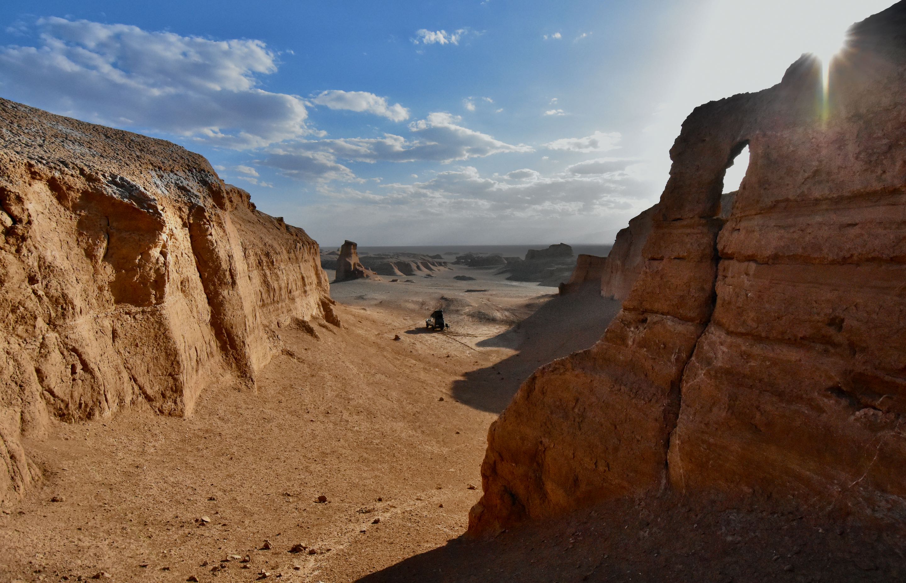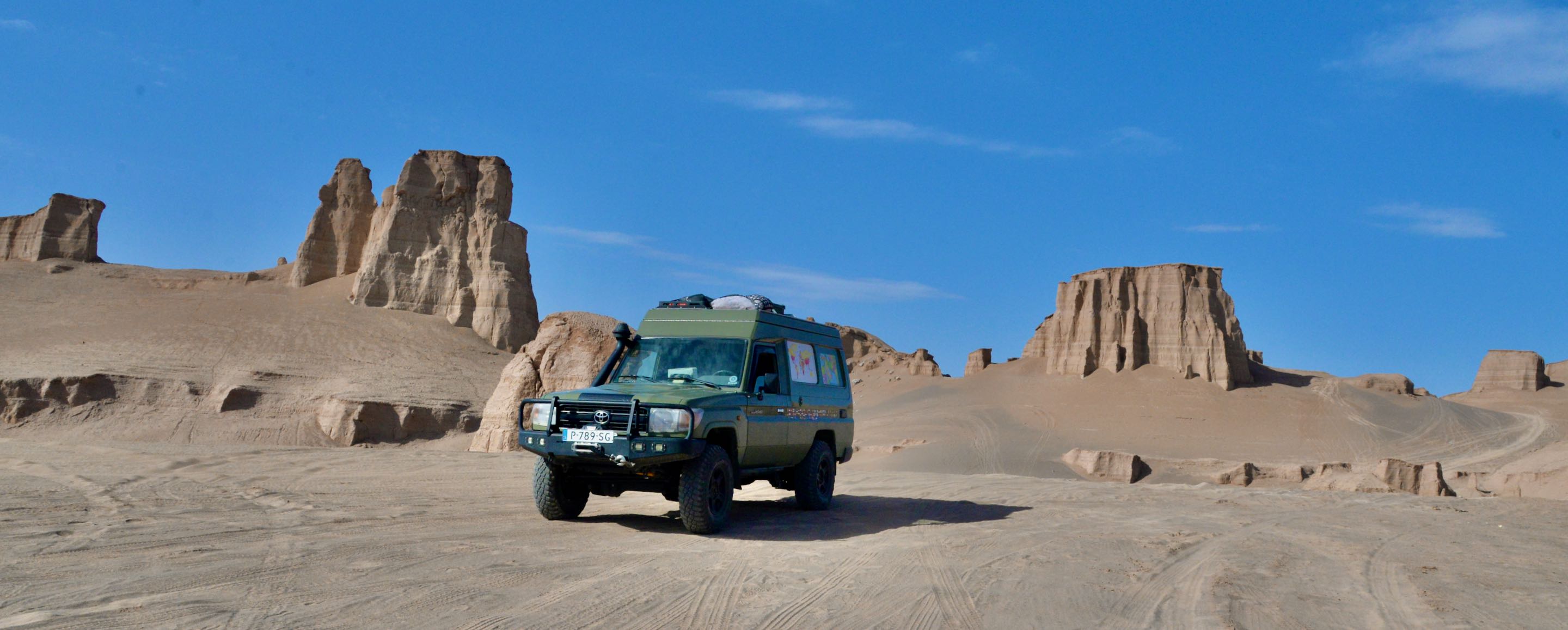 In de schaduw van een kalut maken we koffie en genieten van de omgeving. We besluiten nog zo’n 20 kilometer verder te rijden van daar begint de zogenaamde “ Snake Canyon”. In Iran wordt deze canyon “ Zaban e Mar” genoemd. Een reusachtige canyon lopend door het landschap, de naam snake canyon komt vanwege de vorm van de slangentong, een y als het ware. We duiken het mulle zand van de canyon in totdat we niet verder kunnen, draaien is nog een hele opgaaf vanwege de krappe ruimte.