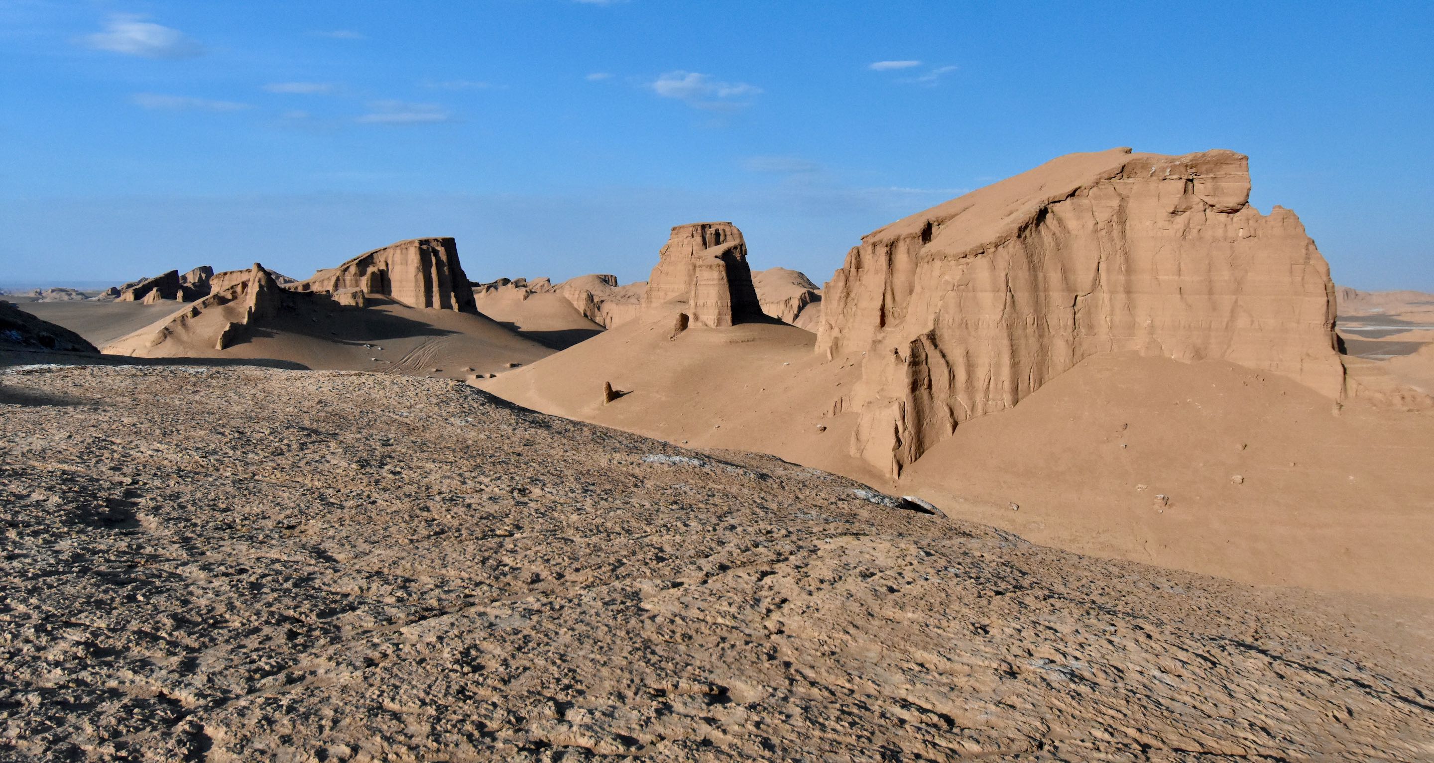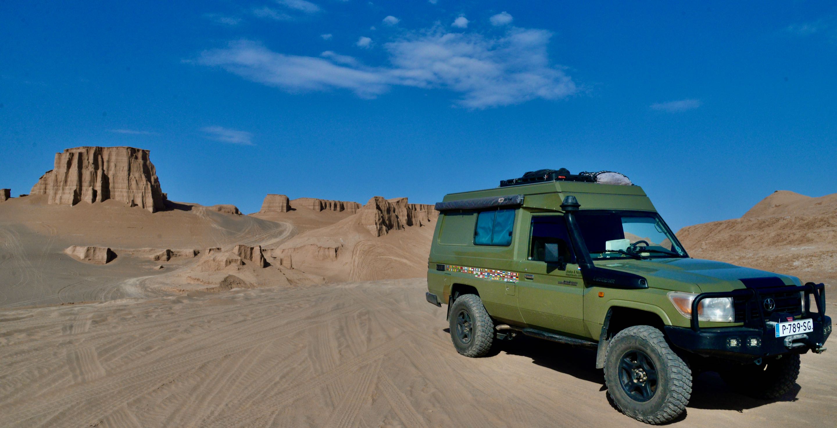 De reis kan beginnen; door een fascinerend berglandschap rijden we richting Shahdad deze stad is al bijna 5000 jaar bewoond. De weg erlangs leidt ons richting de “Kaluts”. Dit bijzondere landschap ligt halverwege onze afslag richting de echte grote woestijn. Na ja voor ons doen dan, de “Luts” is zeg maar heel Nederland en dan nog 20% extra. Op de wereldranglijst van grote woestijnen staat ie slechts op plek 33 maar toch. We passeren ook nog “ Lut Lake” een zoutmeer met de meest uiteenlopende ronde uitstupsels, her en der is nog water te zien.