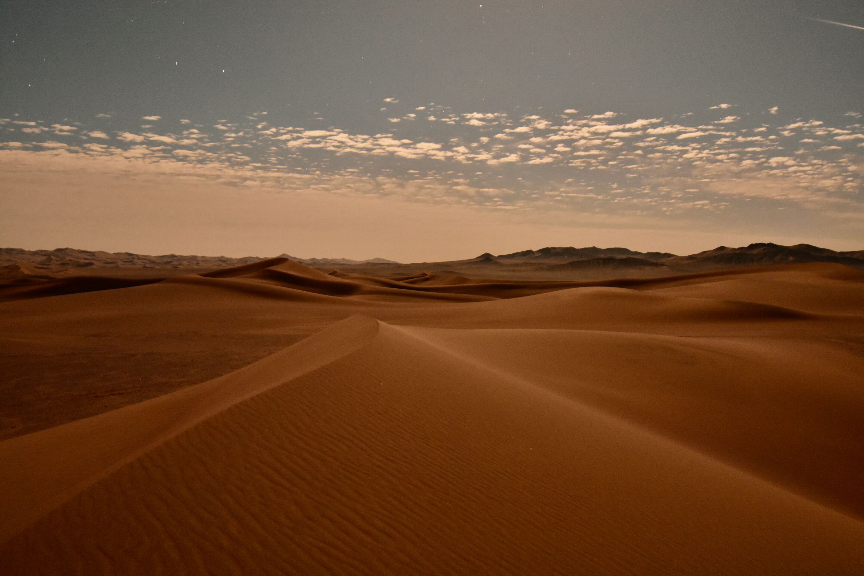 Voor de tweede nacht hebben we een duinpan gevonden die mooi vlak is en beschutting geeft tegen de af en toe waaiende wind.