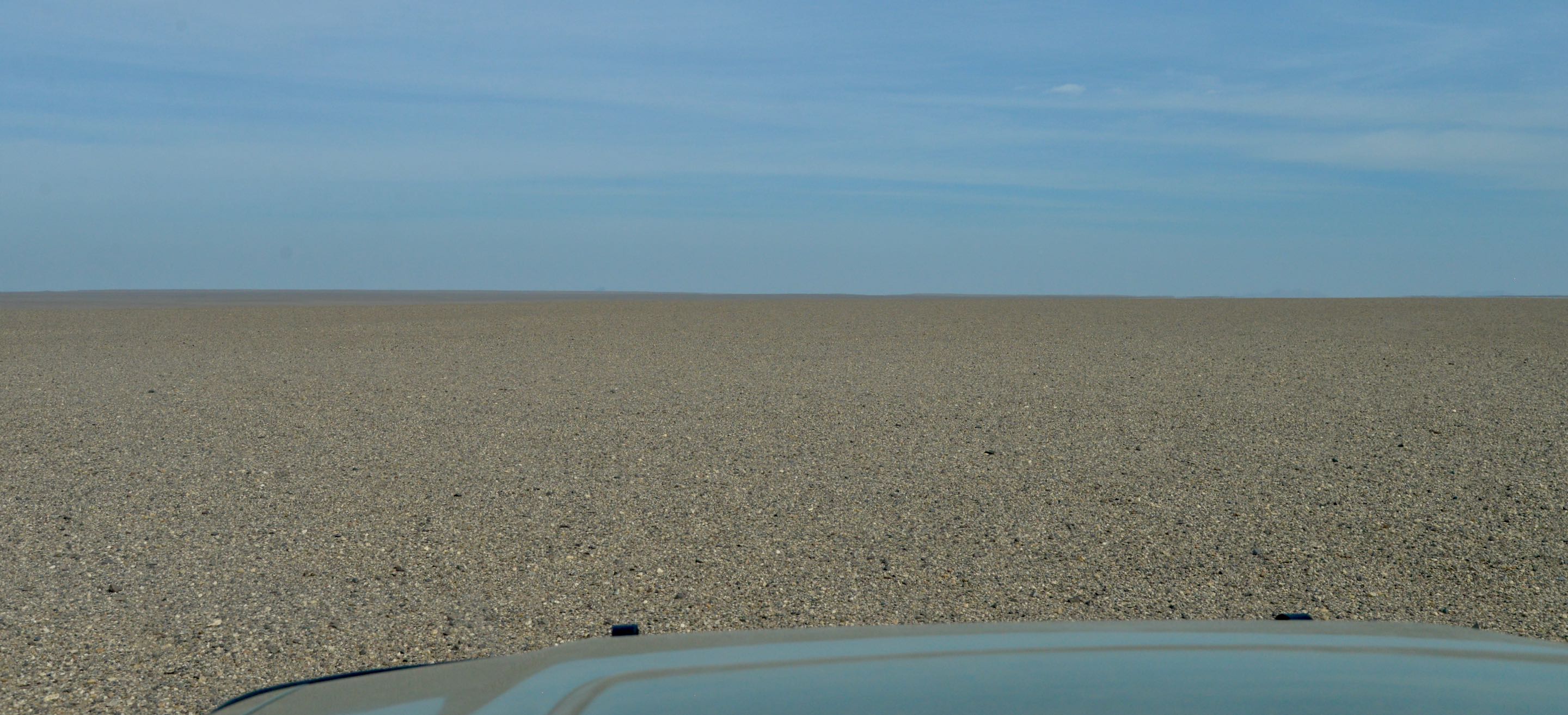 We rijden door al dit moois en vervolgen daarna onze route die inmiddels is veranderd in een weer ietwat saai kiezelsteenlandschap en vlak, tientallen kilometers zouden volgen.