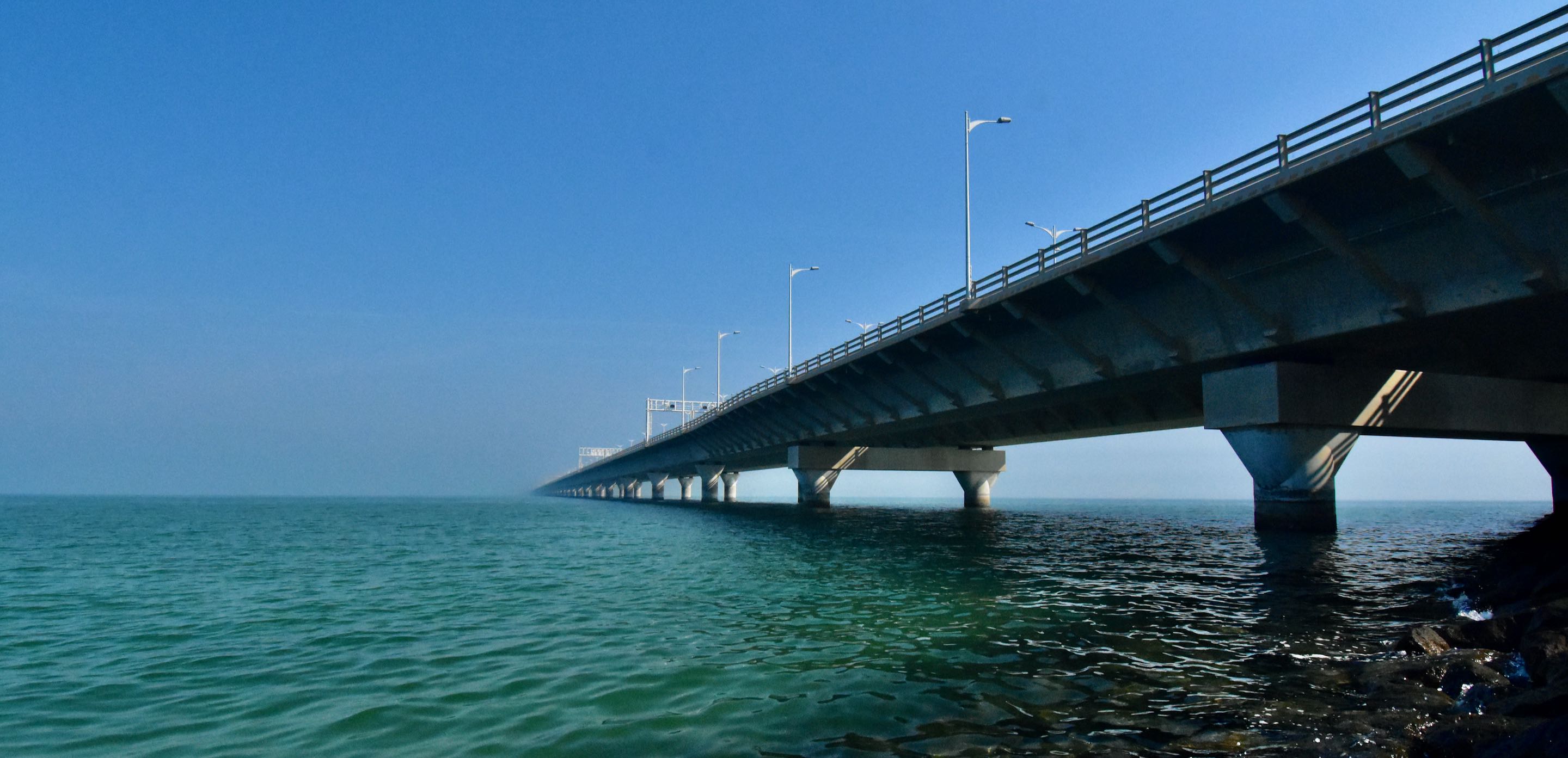 We kampeerden iets voor de maar liefst 6 baans 28 km lange brug waarom zes banen mag joost weten want er was zo goed als geen verkeer.