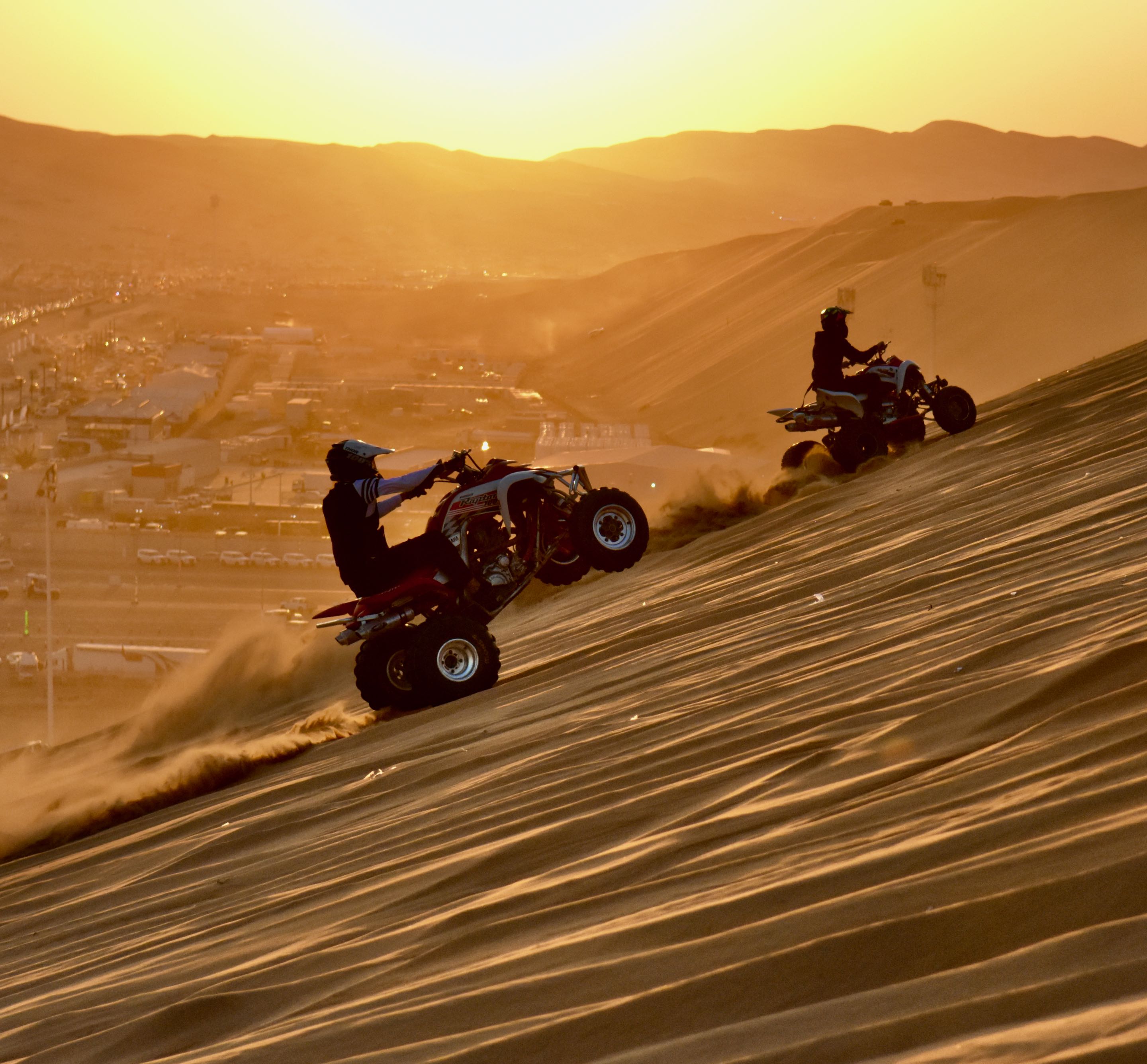 Ok… Het Liwa festival vindt eens per jaar plaats en alles draait er om de Moreeb Dune. Een zandduin gebied waar je duinen vind die maar liefst 300 meter hoog zijn, maar het bijzondere is de helling die is 50 graden en gaat aan een stuk recht omhoog. Elders bestaan zulke hoge duinen meestal uit gestapelde duinen.
