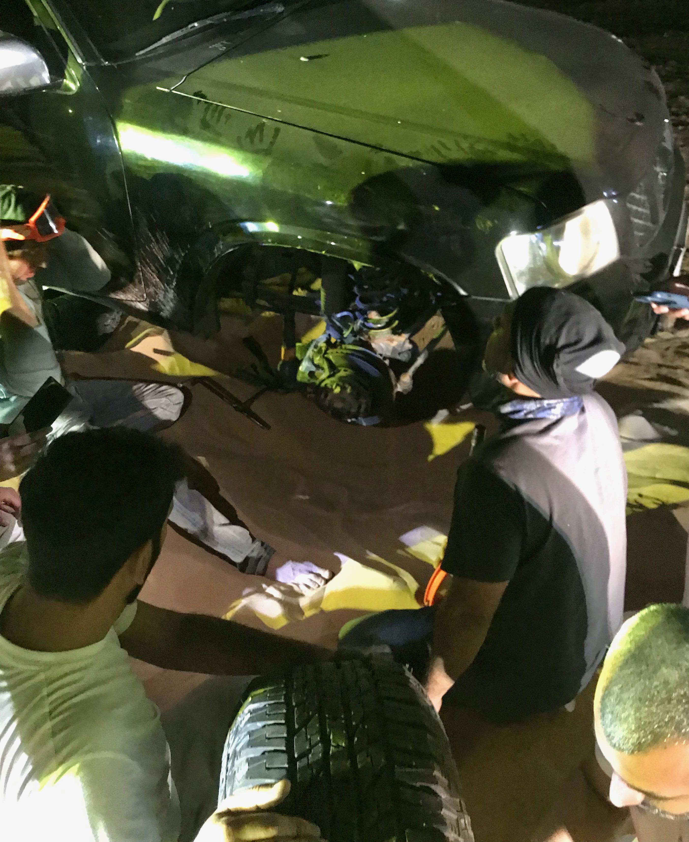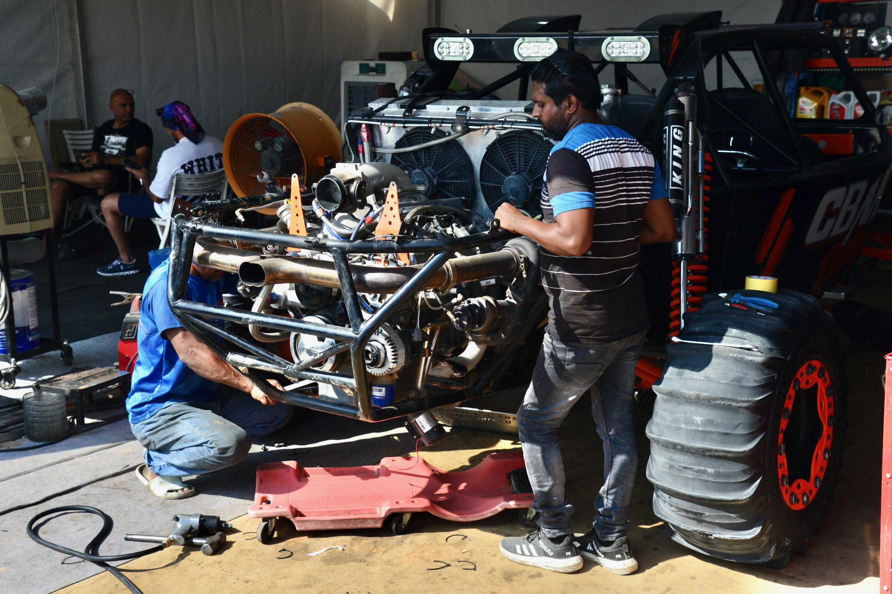 Ook in VIP camp nr 4 werd serieus gesleuteld, een gebroken klepveer moest worden vervangen. Er werd even op en neer gereden naar Dubai voor materiaal en gereedschap. Uiteindelijk toch niet de juiste klepveer, gelukkig verkochten ze hier in “garage lane” complete sets veren dus werd besloten alle 16 klepveren maar te vervangen iets wat toch wel iets meer dan een uurtje duurde.