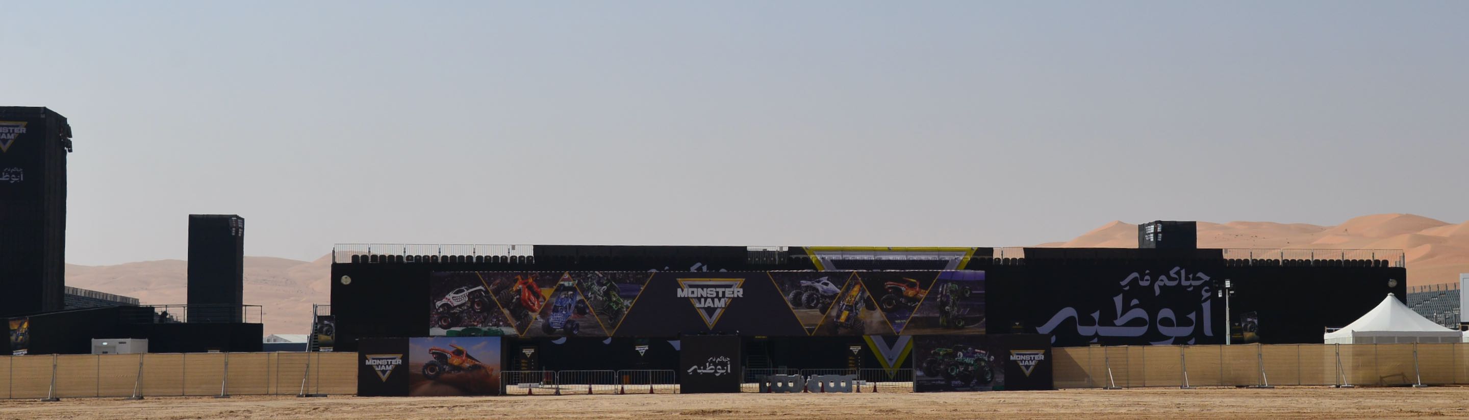 Naast de village is even een eenmalig stadion gebouwd voor de Monster Jam, u weet wel die auto’s met heeeele grote wielen die salto’s maken (zo niet google maar even).
