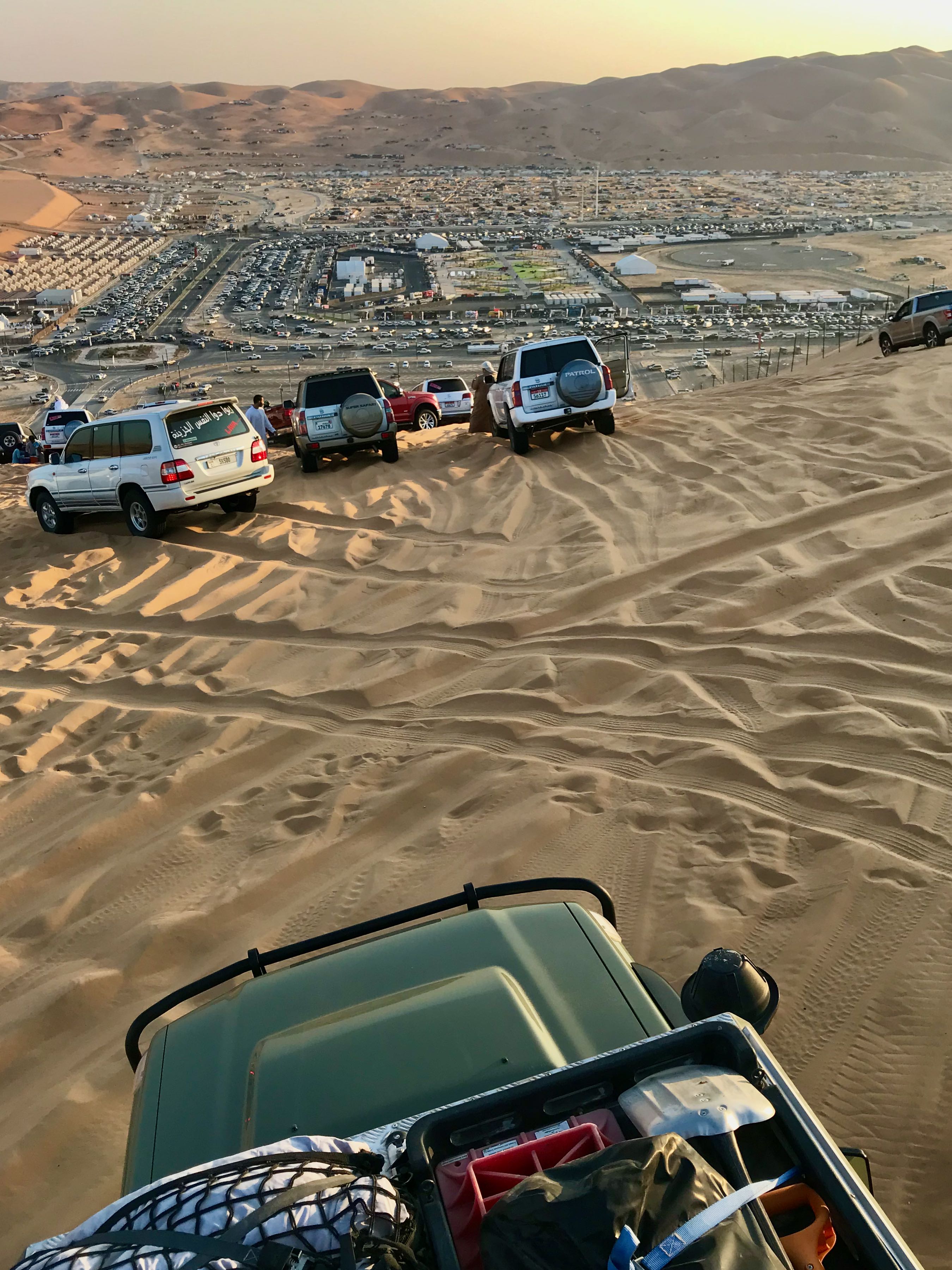 Maar goed Liwa festival, ik kwam het tegen in de voorbereiding op internet en had op het bekende filmpjes kanaal al een wat beelden voorbij zien komen van auto’s met vele pk’s die tegen een zandduin opreden. Niet wetende dat ik enkele jaren later daar getuige van was. Het festival is groot, heel groot en begint tegenwoordig al op 8 dec en duurt t/m 31 dec.