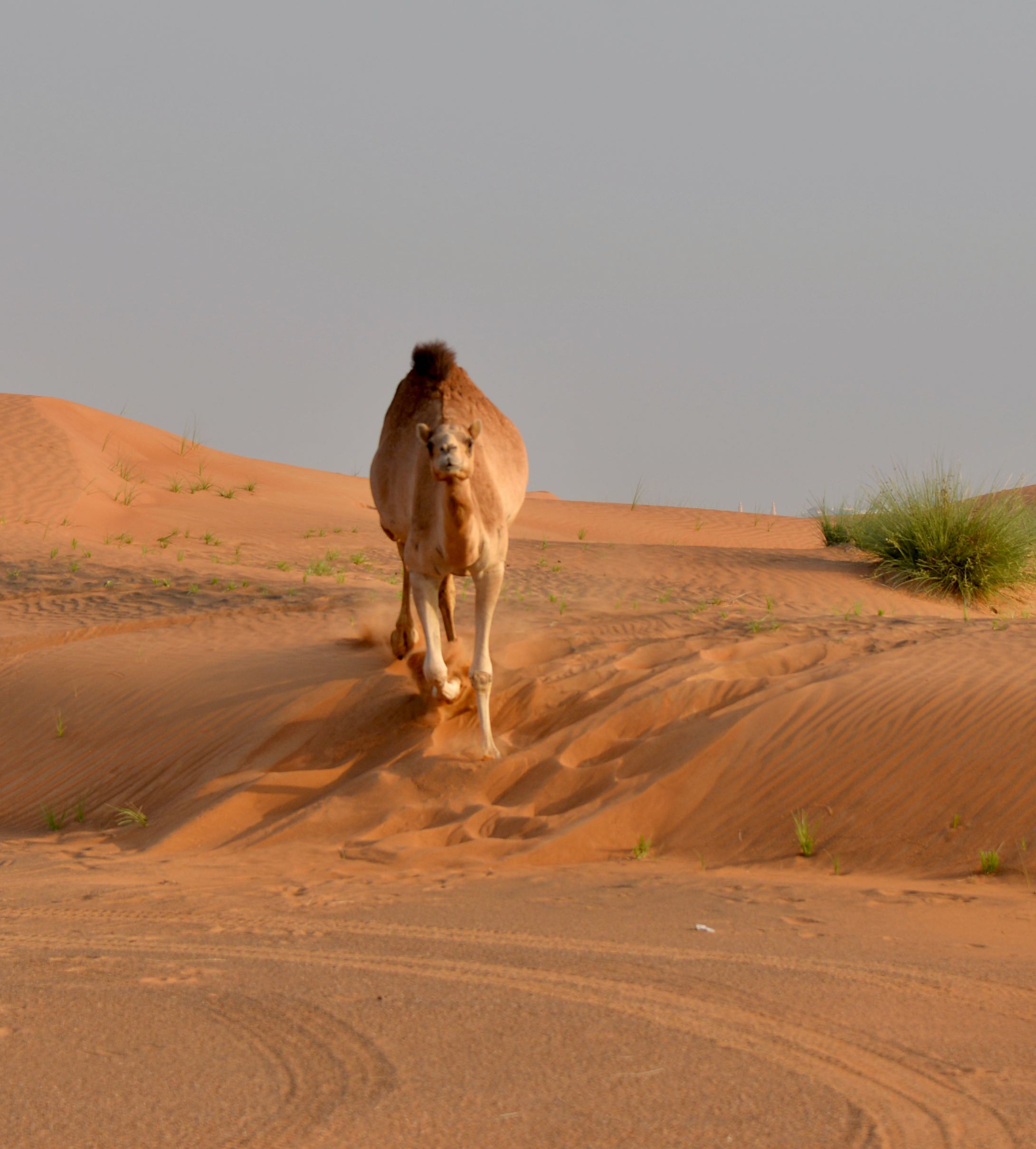 Het lijkt ernstiger dan het was alleen het ego heeft een klein deukje opgelopen met de toyo was niets aan de hand. Met ietsje meer de rem erop rijd ik verder door de duinen. Op een enkele dromedaris na die wat gekke bekken voor me trekken kom ik hier niemand tegen.